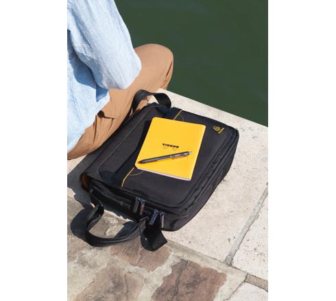 Tasca sul flat idoneo per riporre alcuni oggetti preziosi. Scomparto interno imbotito chiuso con cerniera per laptop, oltre a uno spazio per l'archiviazione dei documenti..