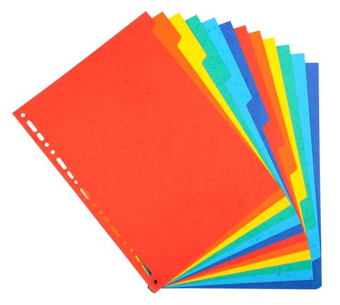 DIVISORI NEUTRI 12 TASTI CARTONCINO RICICLATO COLORI A4 220G/MQ - A4 - COLORI ASSORTITI