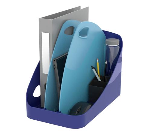 Design elegante per rimanere sulla scrivania durante il giorno ed essere utilizzato come portariviste.
