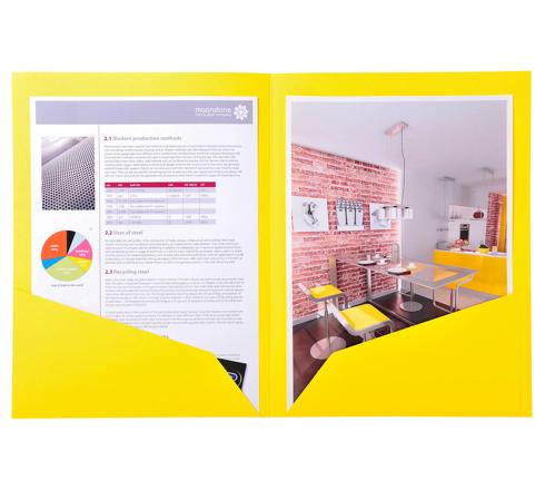 Cartella doppia tasca per un perfetto mantenimento del contenuto grazie alle due alette interne in basso. Intaglio per inserimento biglietto da visita.