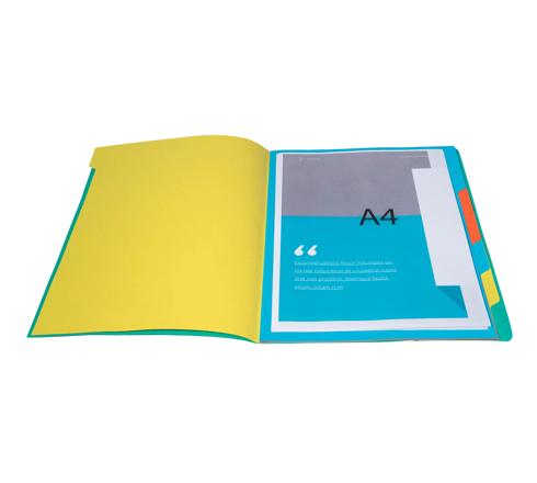 CARTELLA CON PUNTI METALLICI E DIVISORI, CHIUSURA CON ELASTICI ANGOLARI, INTERNO COLORATO, 7 SCOMPARTI - A4 - VERDE