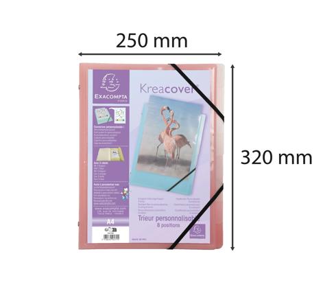 Personnalisation du trieur facilitée grâce à la pochette Kreacover et des 8 compartiments grâce aux fenêtres découpées dans la couverture.