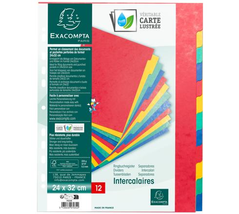DIVISORI NEUTRI 12 TASTI CARTONCINO LUSTRÉ COLORI A4 225G/MQ - 24X32CM - COLORI ASSORTITI