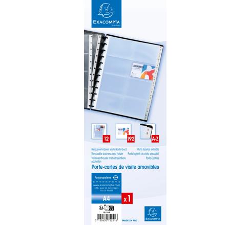 PORTABIGLIETTI DA VISITA PER 192 BIGLIETTI, 12 BUSTE RIMOVIBILI E RIPOSIZIONABILI - A4 - NERO