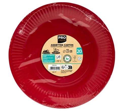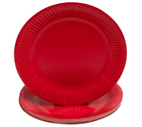 CONF. 20 PIATTI MONOUSO PIANI E TONDI IN ROBUSTO CARTONE, DIAMETRO 23CM - ROSSO