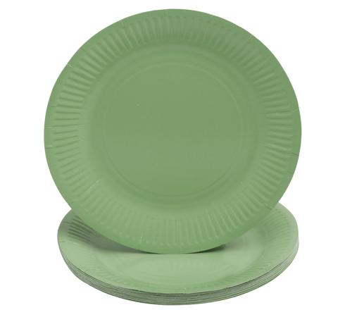 CONF. 20 PIATTI MONOUSO PIANI E TONDI IN ROBUSTO CARTONE, DIAMETRO 23CM - VERDE OLIVA