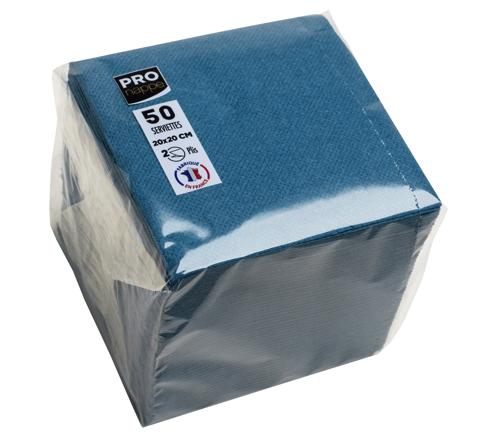 CONF. 50 TOVAGLIOLI COCKTAIL IN OVATTA DI CELLULOSA MICRO-GOFFRATA A 2 VELI, 20X20CM - BLU PACIFICO