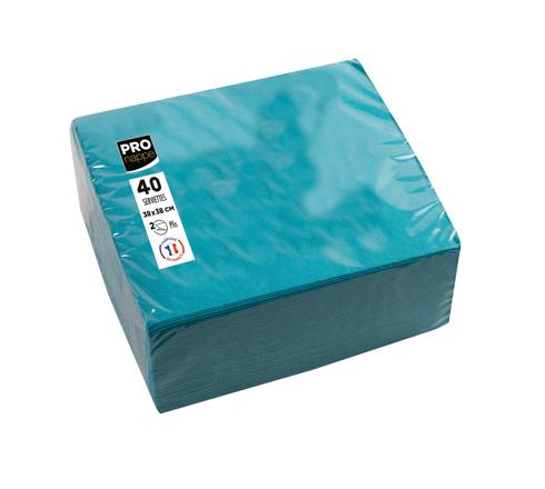 CONF. 40 TOVAGLIOLI MONOUSO IN OVATTA DI CELLULOSA MICRO-GOFFRATA A 2 VELI, 38X38CM - TURCHESE