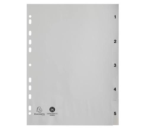TABBLADEN MET BEDRUKTE TABS IN PP - 5 TABS - 1 TOT 5 - A4 - GRIJS