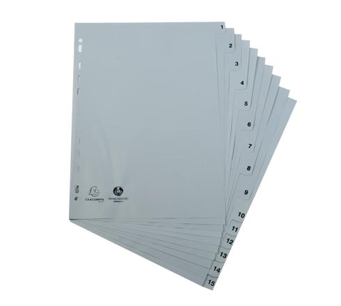TABBLADEN MET BEDRUKTE TABS IN GERECYCLED PP - 15 TABS - 1 TOT 15 - A4 - GRIJS