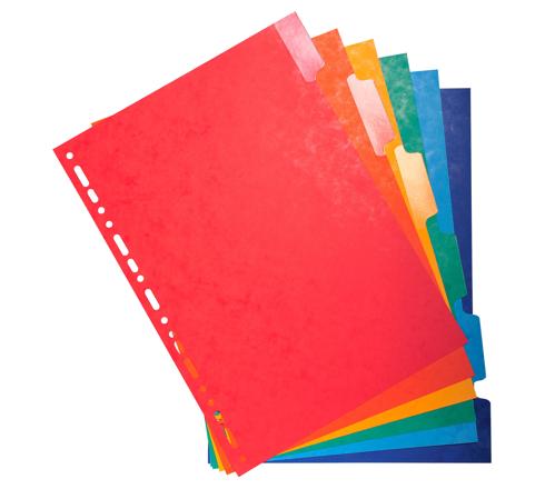 TABBLADEN IN GLANSKARTON 225G MET GEPLASTIFICEERDE GEKLEURDE TABS - 6 TABS - A4 - GEASSORTEERD