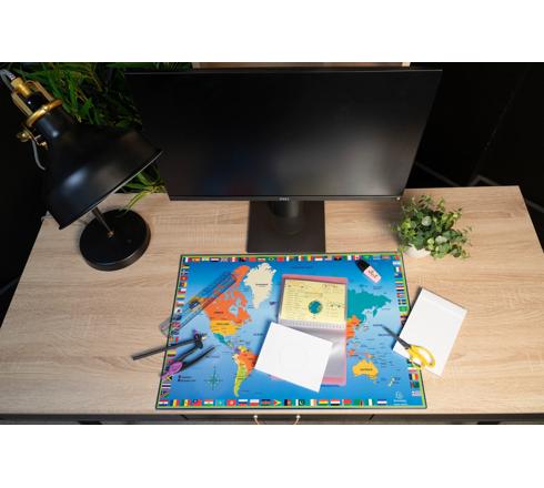 Educatif avec sa carte du monde imprimée, il permettra aux jeunes et moins jeunes de découvrir ou se remémorer les noms des pays, les principaux drapeaux et les frontières géographiques.