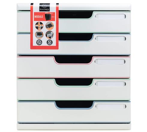 Modulo is een stijlvolle en functionele ladenbox met 5 lades voor het ordenen en opbergen van documenten in A4 en A4+ formaat, elastomappen 24x32 cm en grote enveloppen. Geschikt voor gebruik op kantoor of op school.