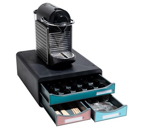 Door zijn beperkte hoogte (13,5cm) en zijn diepe basis is deze ladenbox met 3 laden zowel geschikt als monitorstandaard, en als onderstel voor een koffiemachine.