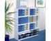 Modules met dezelfde hoogte als een ordner met hefboommechaniek, boven en naast elkaar stapelbaar (MODULO A4 & A3 combineerbaar).