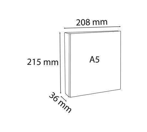 D-ringen voor perfect uitgelijnde bladen en tussenbladen. Met een rug van 36mm biedt deze map een grote opslagcapaciteit tot 180 bladen. A5 formaat, geschikt om steekkaarten, school-of kantoordocumenten te presenteren of op te bergen. Formaat van de inlegvellen om in de tassen te schuiven 195x200 mm.