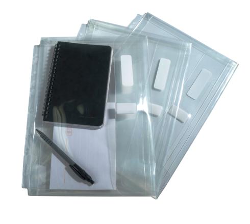 VERPAKKING: in pak van 10 geperforeerde showtassen met klep en klittenband sluiting - kleurloos