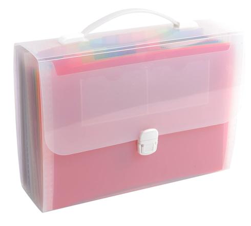 Deze koffer, volledig gemaakt van polypropyleen, met een stevige handgreep, heeft een zeer grote opslagcapaciteit van ongeveer 800 vellen verdeeld in 24 vakken.