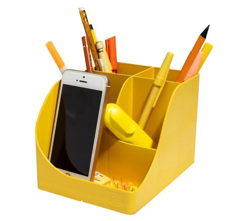 Dankzij de 5 vakken van verschillende hoogtes kun je er al je gangbare spullen in opbergen. Er zijn 4 hoge vakken voor grotere accessoires zoals scharen en pennen, en 1 laag vak voor kleine benodigdheden zoals paperclips, punaises, USB-sticks of telefoon.