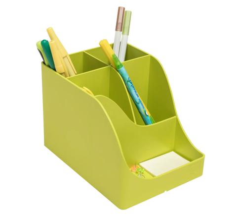 Een pennenhouder met grote opslagcapaciteit dankzij de 5 vakken van verschillende hoogte: 4 hoge vakken voor het opbergen van grote benodigdheden zoals schaar en pennen, en 1 lager vak voor het opbergen van kleine spullen zoals paperclips, duimspijkers, USB-sticks of zelfs een smartphone.