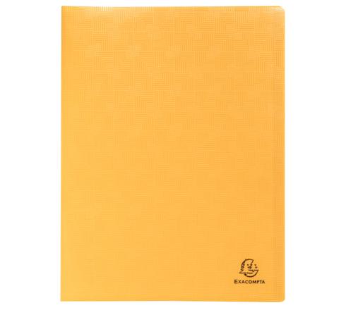 Omslag in halfharde gerecyclede polypropyleen 5/10e, vlek- en krasbestendig. Insteekhoezen in hoog transparante inktafstotende PP.