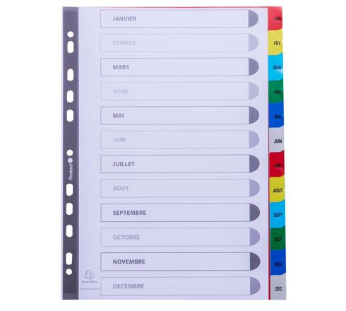 TABBLADEN MET BEDRUKTE TABS IN GEKLEURDE PP - 12 TABS - JANUARI/DECEMBER- A4 - GEASSORTEERD