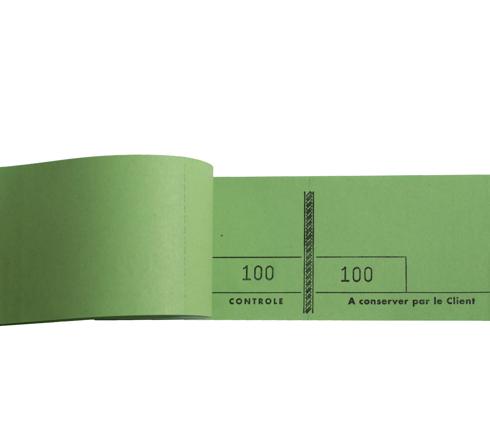 Elk vel bestaat uit 3 coupons waarvan twee afscheurbaar: souche, controle en klant.