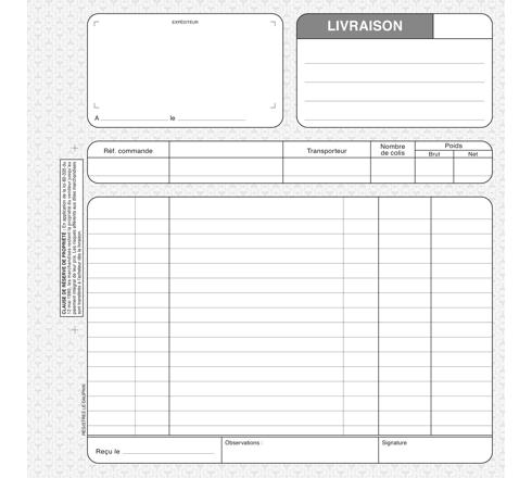 Papier autocopiant texté 50 triplicata pour les LIVRAISONS