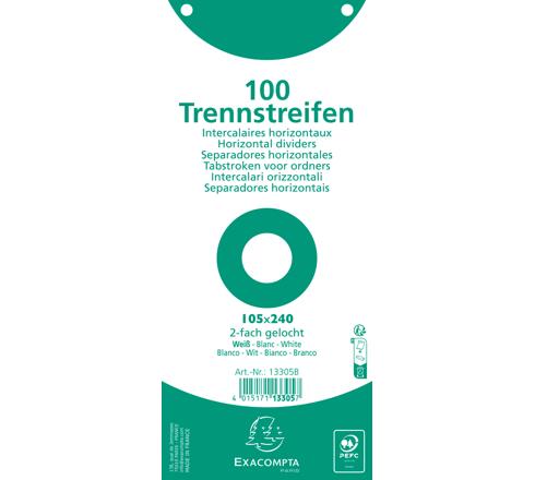 PAQUET 100 FICHES INTERCALAIRES HORIZONTALES UNIES PERFORÉES - 105X240MM - BLANC