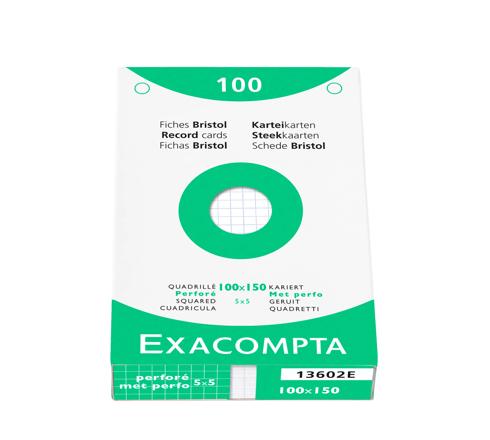 ÉTUI DE 100 FICHES - BRISTOL QUADRILLÉ 5X5 PERFORÉ 100X150MM - BLANC