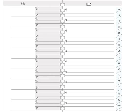 96 pages - spirale intérieure pour une ouverture à plat - Index alphabétique - Pages de gauche pour les numéros de téléphone et pages de droite pour les adresses e-mails ou postales.