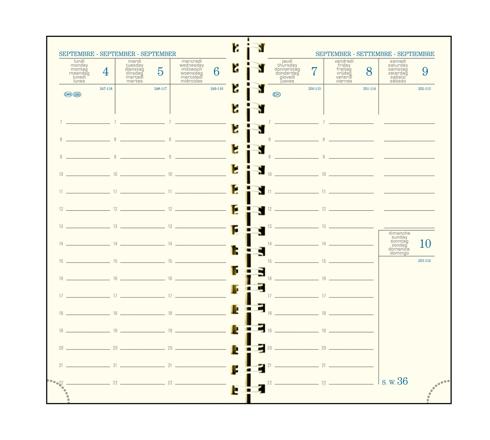 Découvrez notre incontournable avec sa couverture en polypro translucide rainé. La semaine sur 2 pages à la verticale, vision de la semaine d'un seul coup d'oeil, large amplitude horaire du lundi au vendredi (7h à 22h), espaces de notes pour le samedi et le dimanche. Edition multilingue. Couverture en polypro translucide rainé, spirale extérieure pour une ouverture pratique à plat et à 360 degrés.