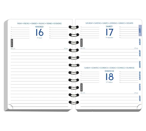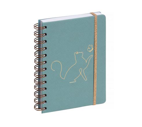 Découvrez l'agenda idéal pour les passionnés de chats. Il se distingue par sa couverture spiralée cuivrée, son marquage élégant et son élastique de fermeture doré. Agenda Elise 1 jour par page pour les jours de semaine et 2 jours par page pour le week-end.