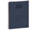 Couverture cartonnée, recouverte d'un papier fantaisie. Spirale métal extérieure. Les + : - impression en bleu et gris, sur papier blanc Clairefontaine, reconnu pour sa qualité et pour permettre une écriture douce et fluide, - tranche naturelle, - emplacements pour les rappels, - coins détachables, pour pouvoir accéder rapidement à la semaine en cours.