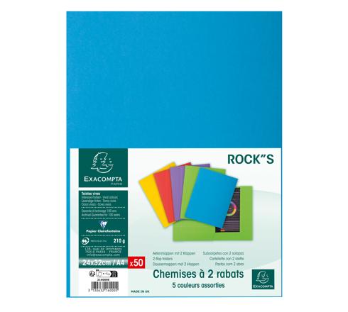 PAQUET DE 50 CHEMISES 2 RABATS ROCK''S 210 - 24X32CM - COULEURS ASSORTIES