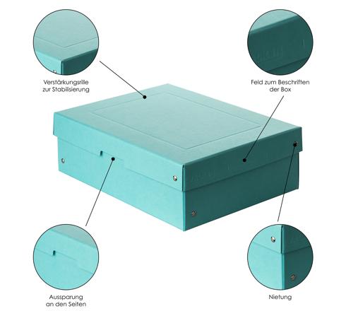 Ses poignées pratiques, ses champs d'inscription et rainures de renfort sur le couvercle sont gages de sa qualité de conception.