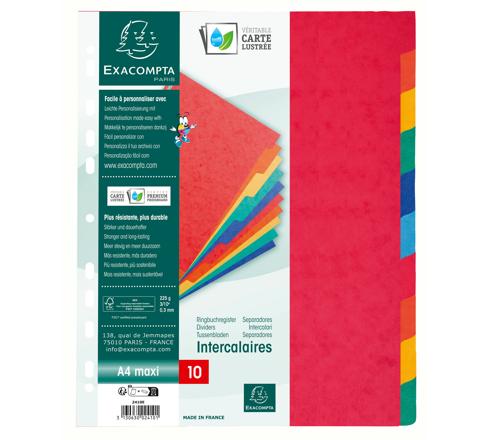 INTERCALAIRES EN VÉRITABLE CARTE LUSTRÉE SOUPLE 225G/M2 FSC® AVEC 10 ONGLETS NEUTRES - COULEURS ASSORTIES