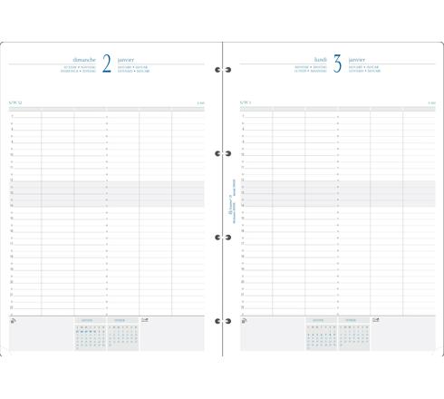 1 jour à la page - Rendez-vous 1/4h par 1/4h de 7h à 23h.