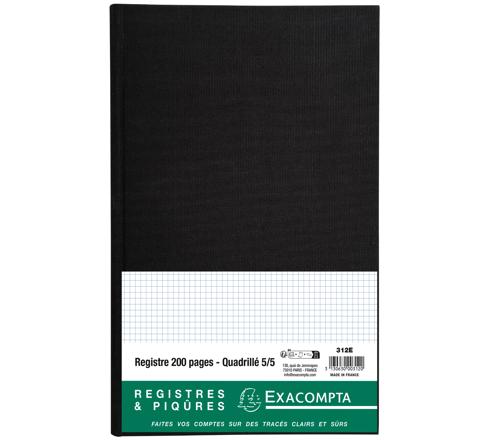 REGISTRE 36X22,5CM 5X5 FOLIOTÉ 200 PAGES - NOIR