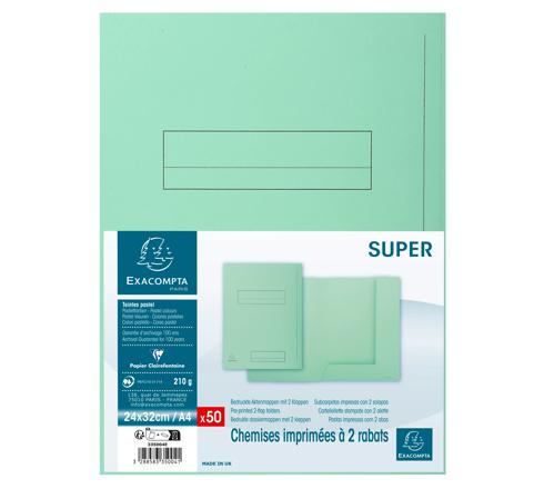 PAQUET DE 50 CHEMISES IMPRIMÉES 2 RABATS SUPER 210 - 24X32CM - VERT CLAIR