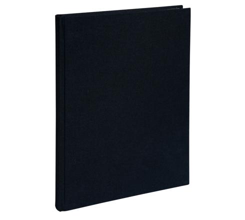 La couverture rigide est recouverture d'une toile noire pour une meilleure résistance et longévité