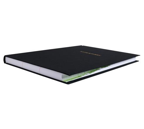 La couverture rigide est recouverture d'une toile noire pour une meilleure résistance et longévité