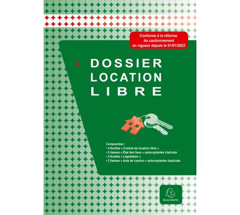 Contient 4 feuilles Contrat de location libre, 3 liasses État des lieux autocopiantes en 3 exemplaires, 3 feuilles Législation, et 2 liasses Acte de caution autocopiantes en 2 exemplaires.