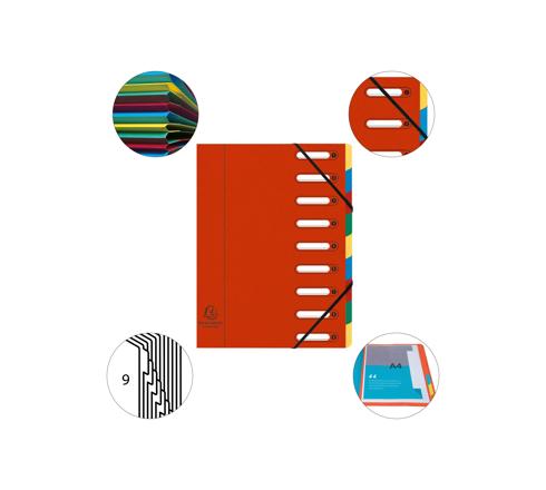 TRIEUR HARMONIKA® À FENÊTRES AVEC ÉLASTIQUES VÉRITABLE CARTE LUSTRÉE 9 COMPARTIMENTS - COULEURS ASSORTIES