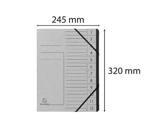 TRIEUR AGRAFÉ AVEC ÉLASTIQUES INTÉRIEUR NOIR 12 COMPARTIMENTS - A4 - GRIS