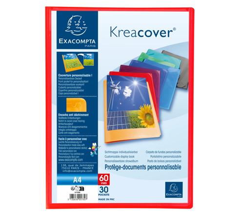PROTÈGE-DOCUMENTS EN POLYPROPYLÈNE SEMI RIGIDE KREACOVER® OPAQUE 60 VUES - A4 - COULEURS ASSORTIES
