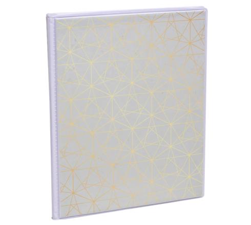 Couverture : souple avec 3 visuels aux motifs aléatoires. Pochettes intérieures plastique haute transparence, avec un fond blanc.