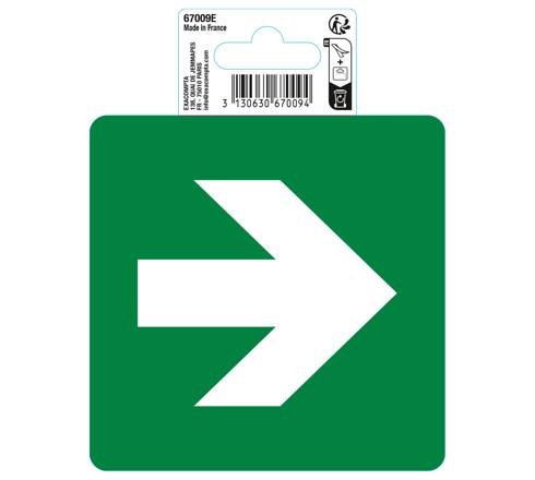 Il peut être associé avec les panneaux adhésifs évacuation gauche (ref. 67002E), Issue de Secours (ref. 67003E ou 67004E) et point de rassemblement (ref. 67005E).
