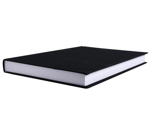La couverture rigide est recouverte d'une toile noire pour une meilleure résistance et longévité.
