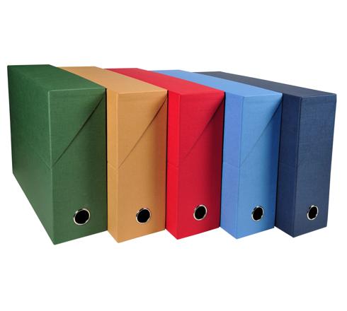 En carton rigide recouvert de papier toilé teinté, cette boite transfert est très pratique pour archiver proprement tous les dossiers volumineux.